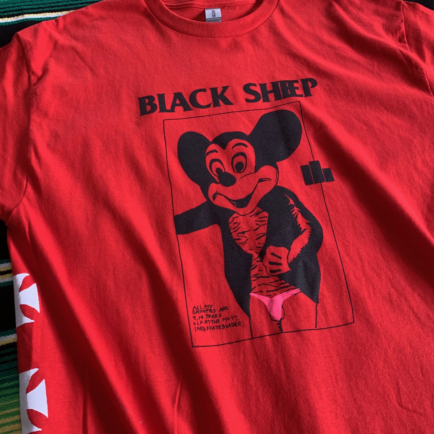BLACK SHEEP SKATES - "IRON-CROSS / M-MOUSE" TEE (RED) Lサイズ